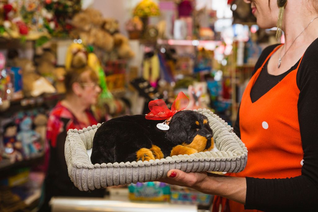 There’s a reason for this. I had a cat called Waif who died in my arms at 22 years of age. I buried her under her favourite blossom tree, and I came to work so upset. In walks this guy with a black and white cat toy, identical to Waif, breathing on his arm. I threw him out of the shop, saying “don’t bring that in here.”