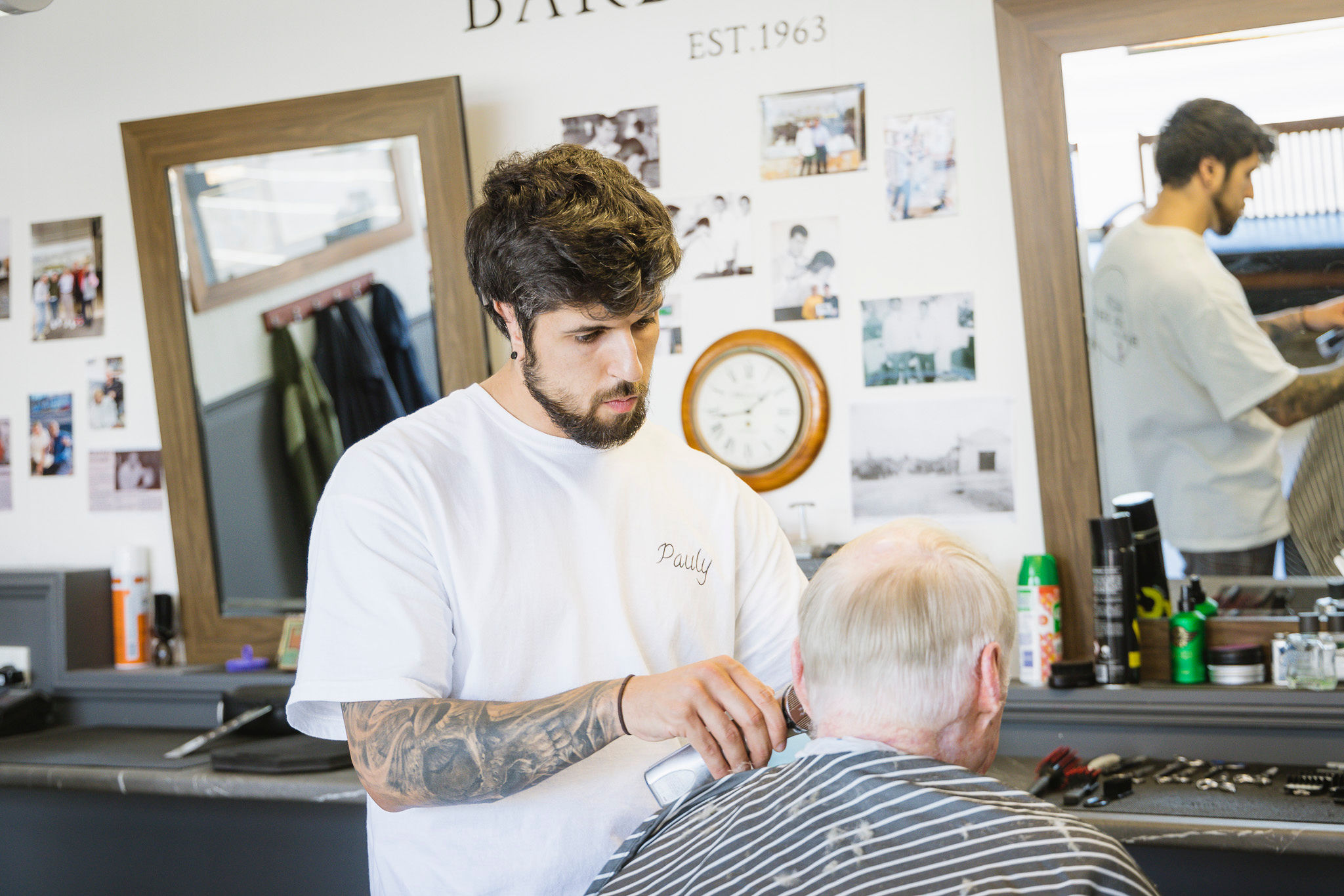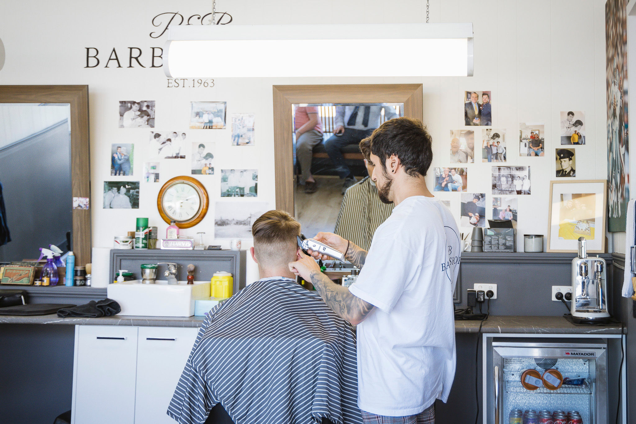 It started as a solicitor’s office in the early 1950s, before turning into a barber shop a few years later. The original owner was a farmer and a businessman. He didn’t work as a barber, but employed others. When my father-in-law, young Bruno, came here in the early 1960s, he did his apprenticeship in these four walls, and learned from the other barbers.