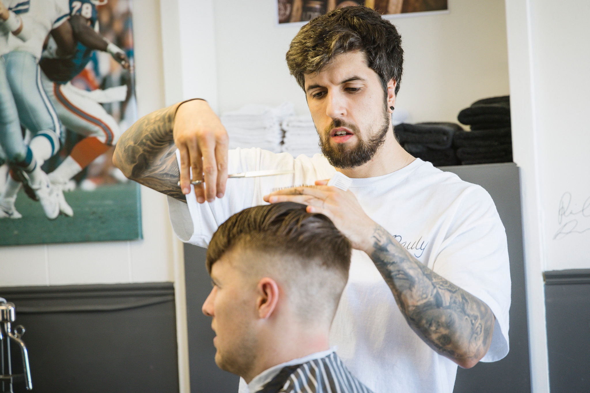 How I start a conversation, and where I choose to take that conversation, is almost like how I cut hair. I know this sounds weird, but as I’m doing the back and the sides, I ask how they are. When I get to the top, I can see whether the conversation will become more personal. As I’m cutting their hair, I take it with me, and it carries me through the whole thing.